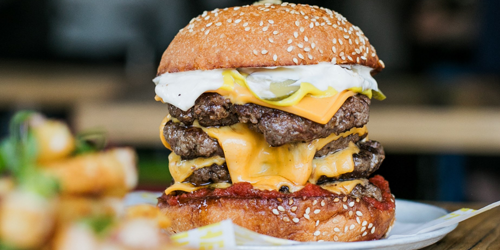 Devour their DOUBLE Fat Bastard Burger with FOUR beef patties, FOUR slices of cheese, pickles, mayo, tomato jam and mustard + serving of Loaded Fries in under 6 mins and your next meal will be free.