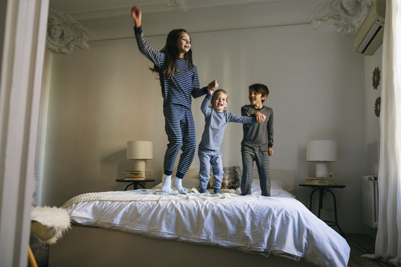 Before beginning the routine, consider the setting. The design of the bedroom is important, with an emphasis on the clean and clear, minimising distraction to enable a focus on the important task at hand, sleep. For children’s rooms, this means a superior storage design, so that the activities and toys can be easily shelved and stowed. For older children, make clearing the decks the first step of their routine, literally putting away the day and signaling that they are ready for the next phase.