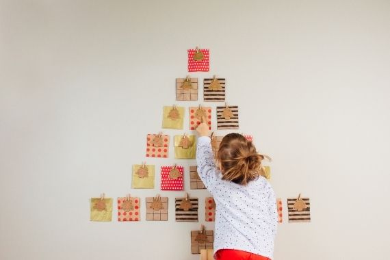 Save your leftover gift wrap or use gift wrap from last year’s festivities to make your own advent calendar. Simply wrap your specially chosen treats and use cardboard to number each one. Fix it to a wall with Blu Tack, or a peg and string, and let the countdown begin!
