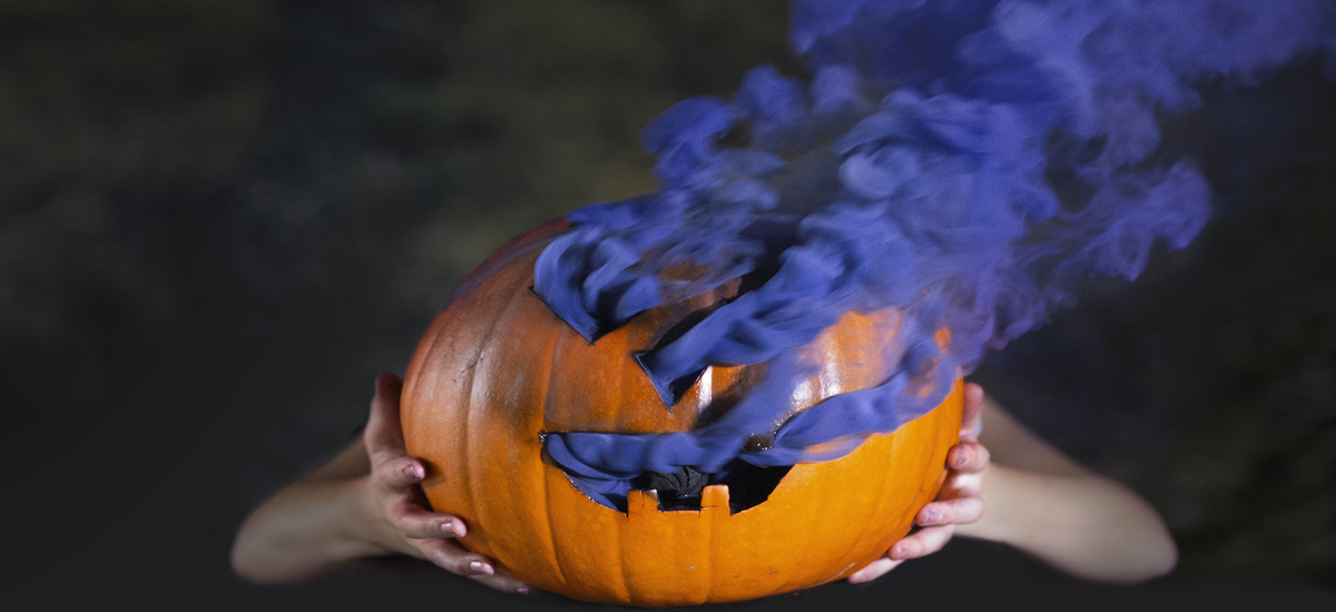 When you’ve finished carving your Jack-o’-lantern, find an outdoor area with plenty of ventilation to start the ghostly smoking act.