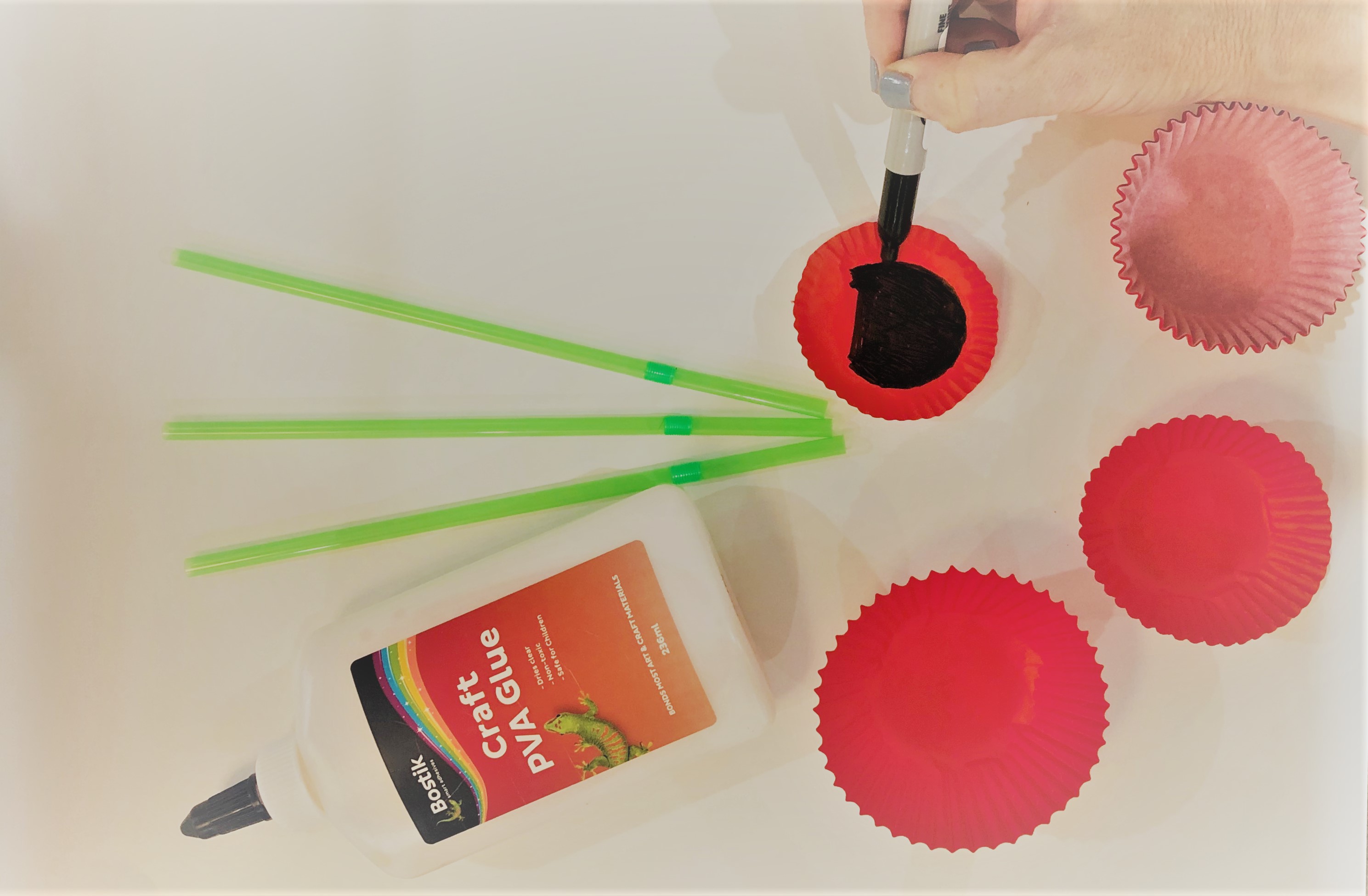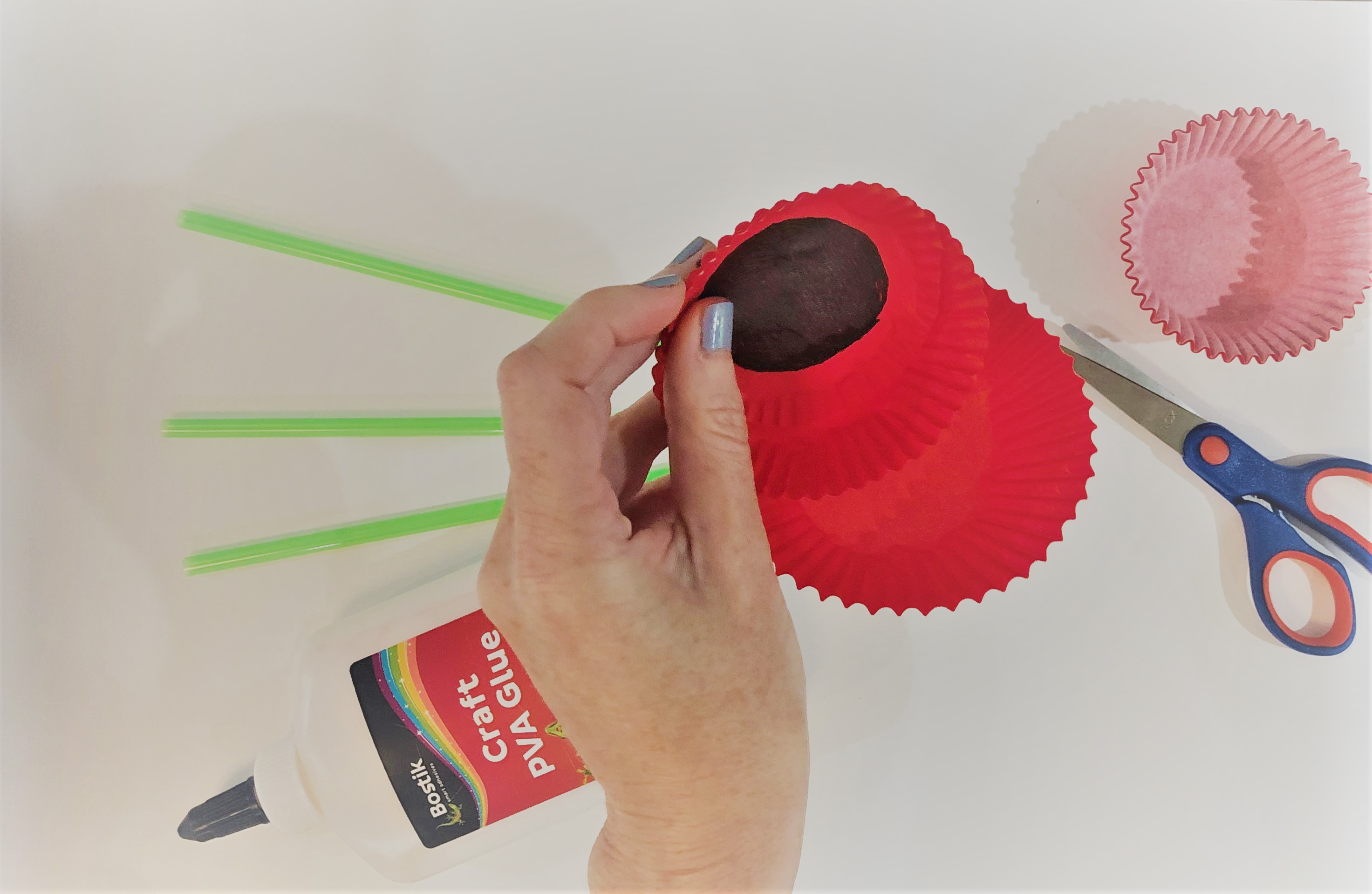 Turn your cupcake holders inside out, so the red side faces upwards